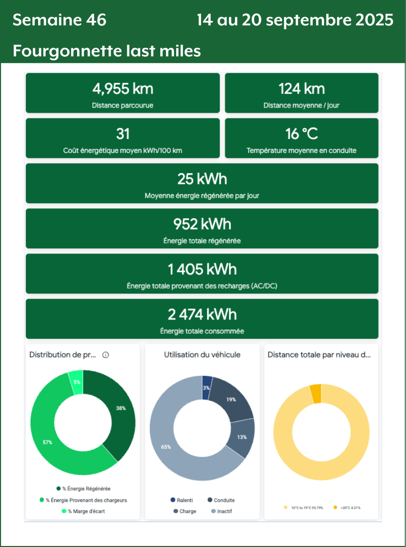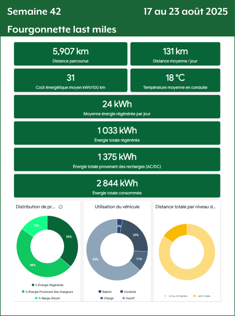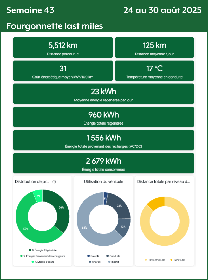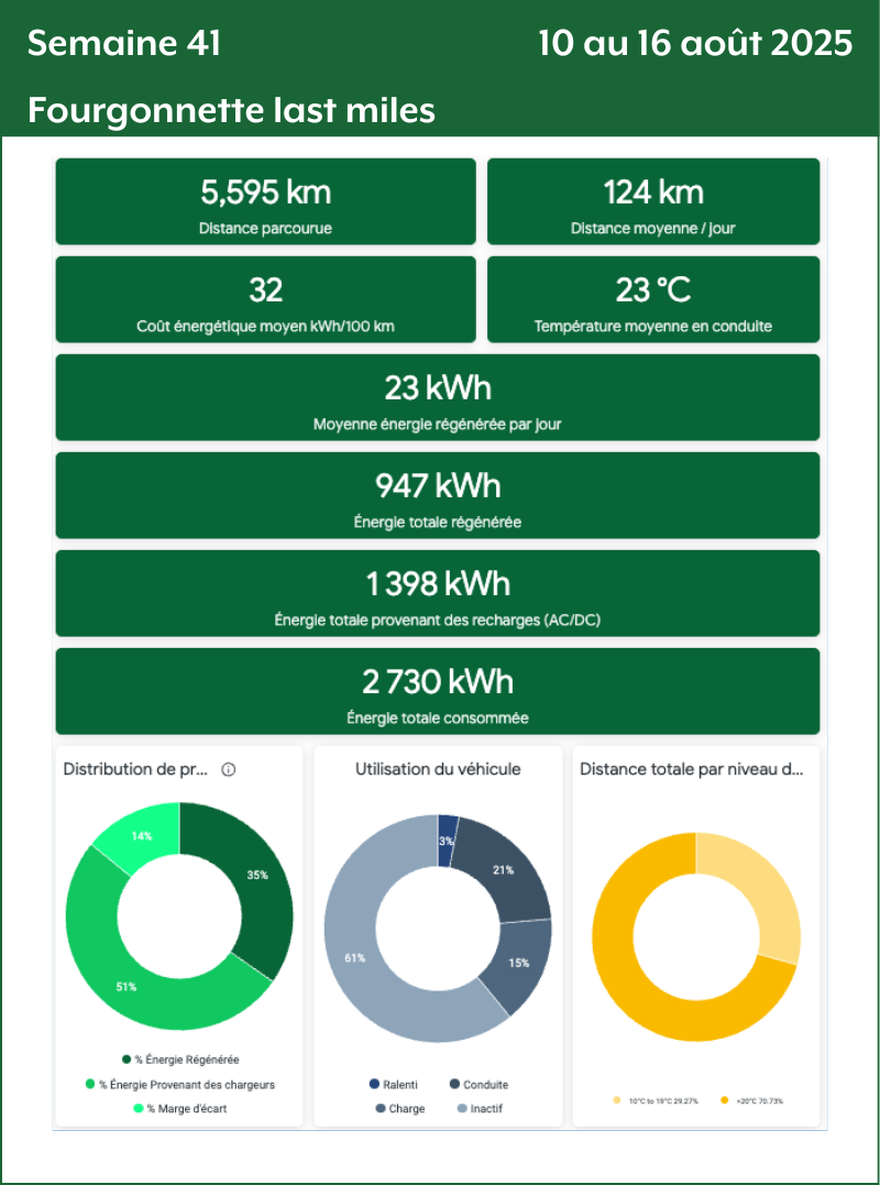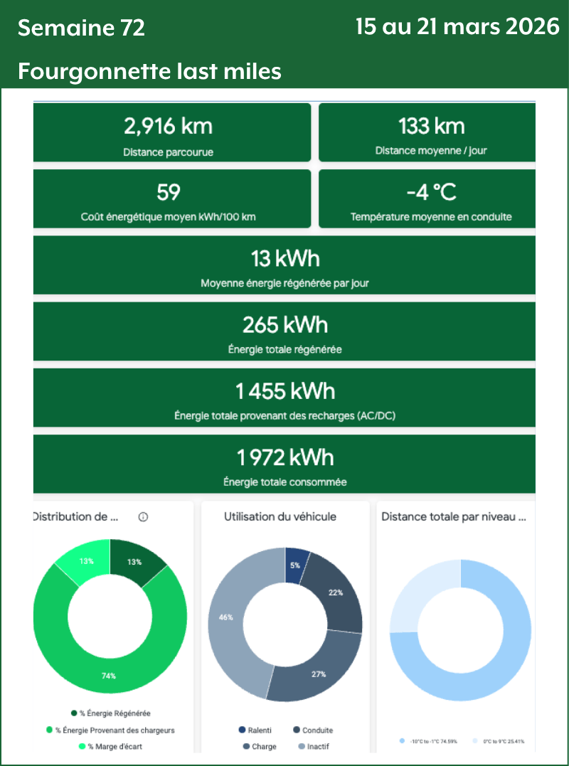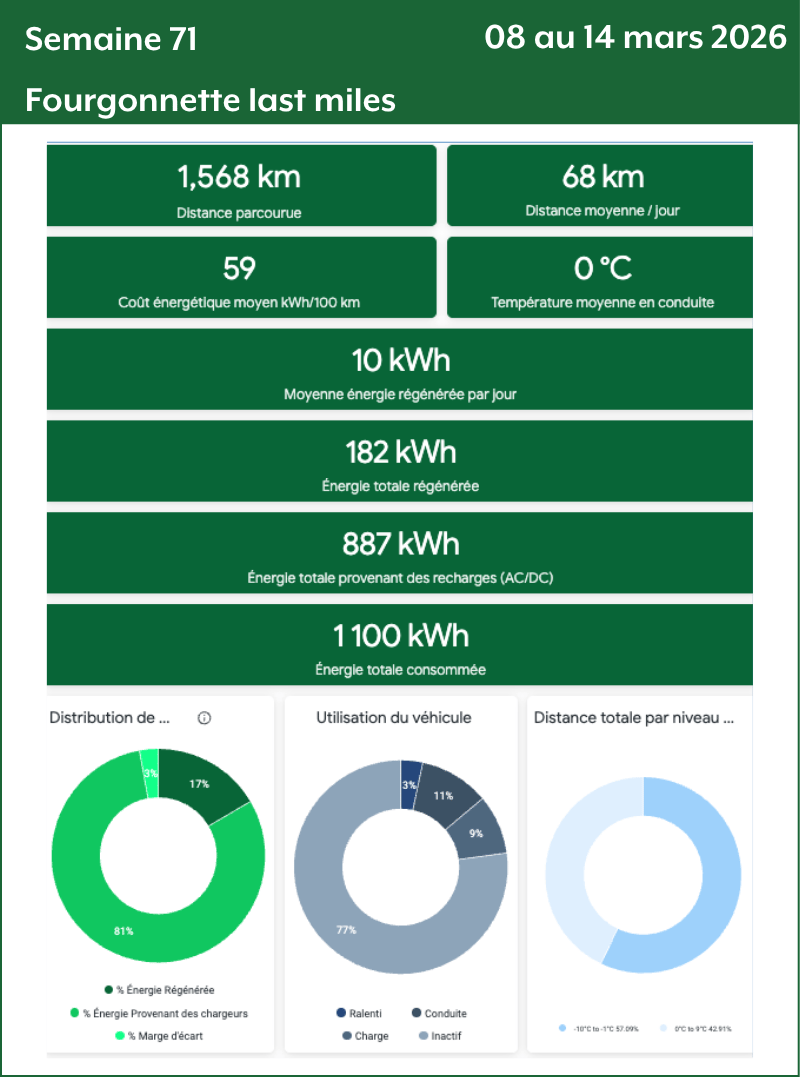 - Distance totale par niveau de température : Le nombre de kilomètres parcourus par tiers de température. Plus le nombre de kilomètres est grand plus la donnée de consommation va être précise et fiable.