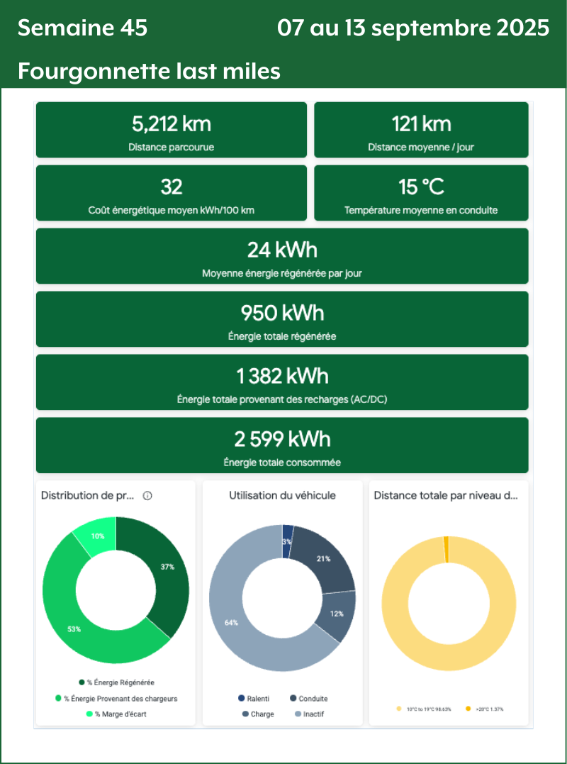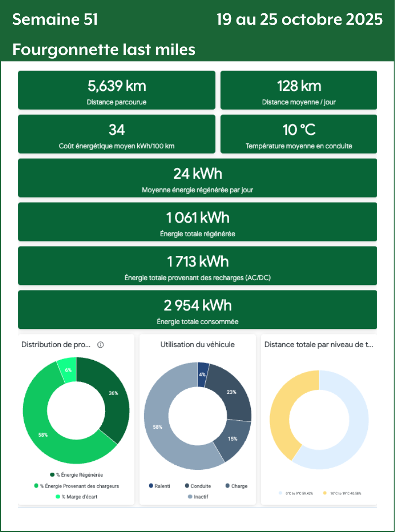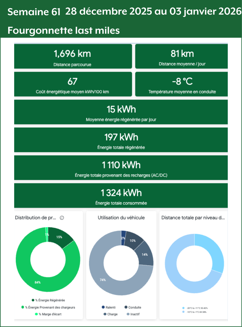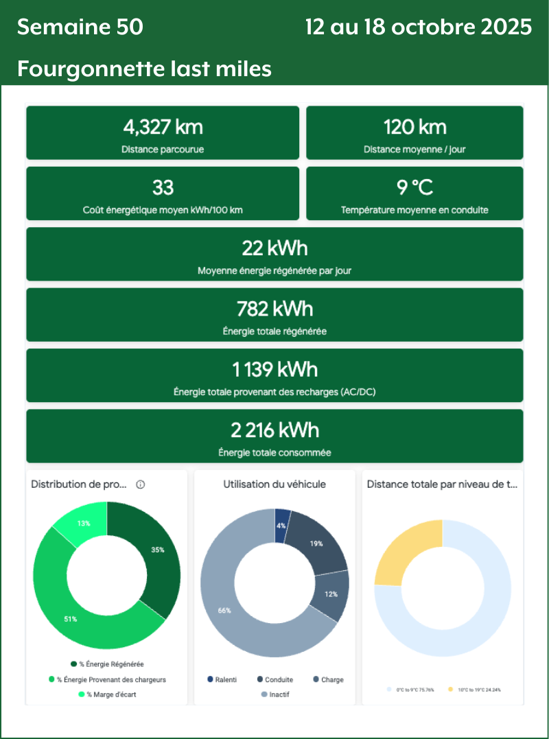 - Énergie Totale provenant des chargeurs : Énergie accumulé lors des périodes de recharge sur borne.